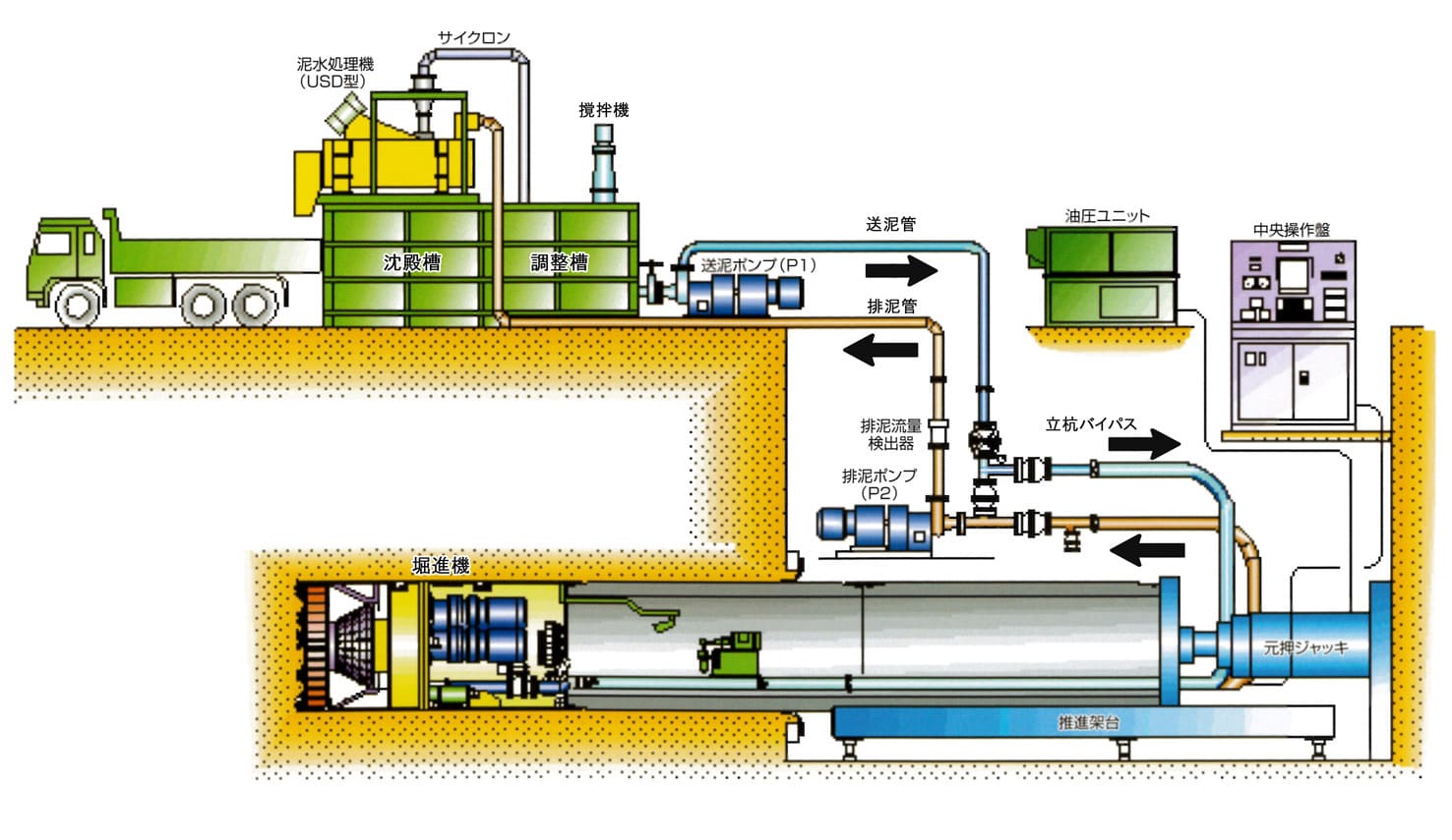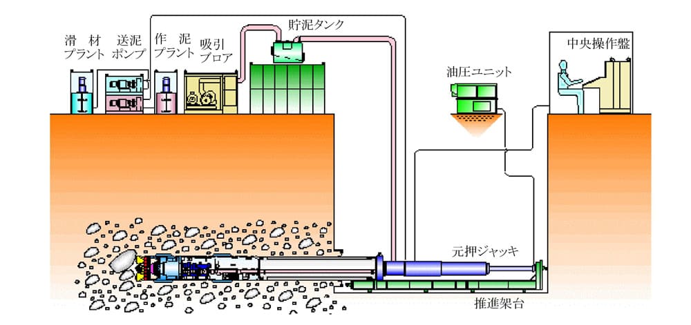 泥濃式推進工法のシステム概要図