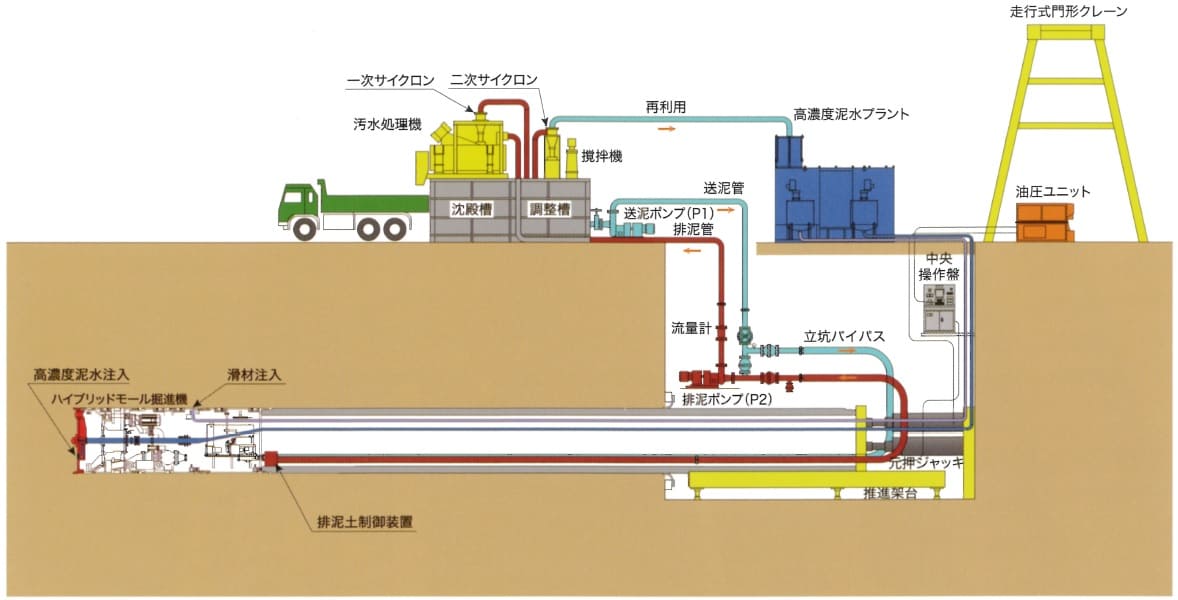 泥水式推進工法のシステム概要図