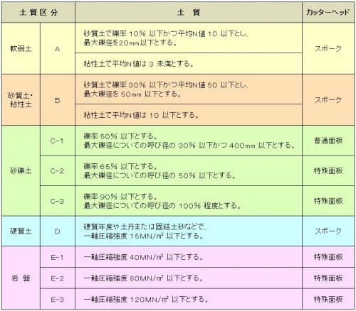土質区分とカッターヘッドの種類