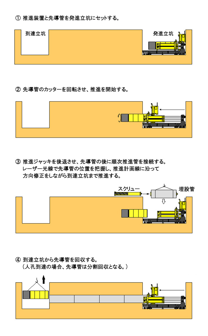泥土圧式小口径推進工法 (オーガー掘削推進工法)