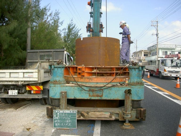 - ケーシングの圧入・引抜きを油圧シリンダにて操作しますので無振動・低騒音です。
